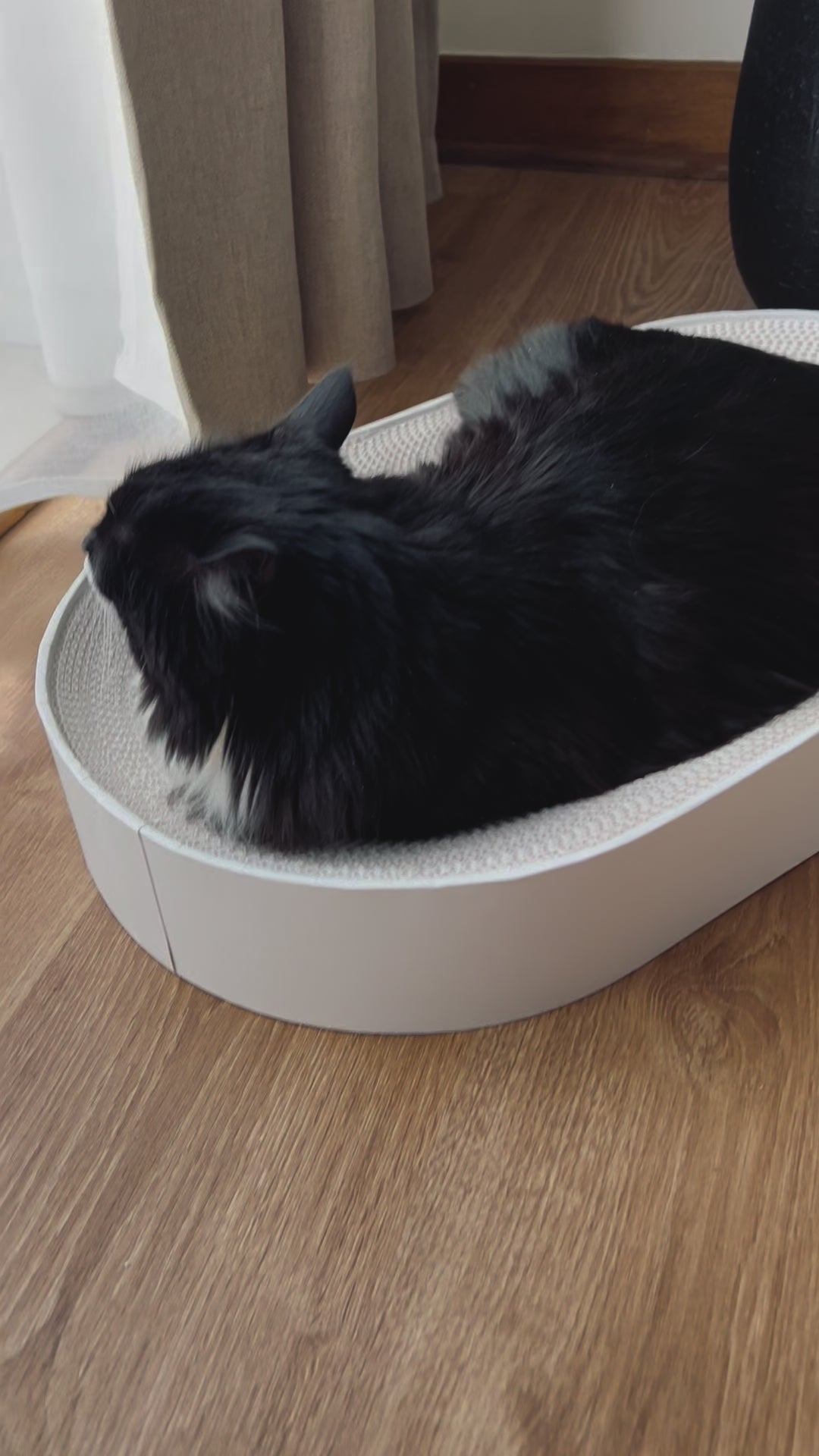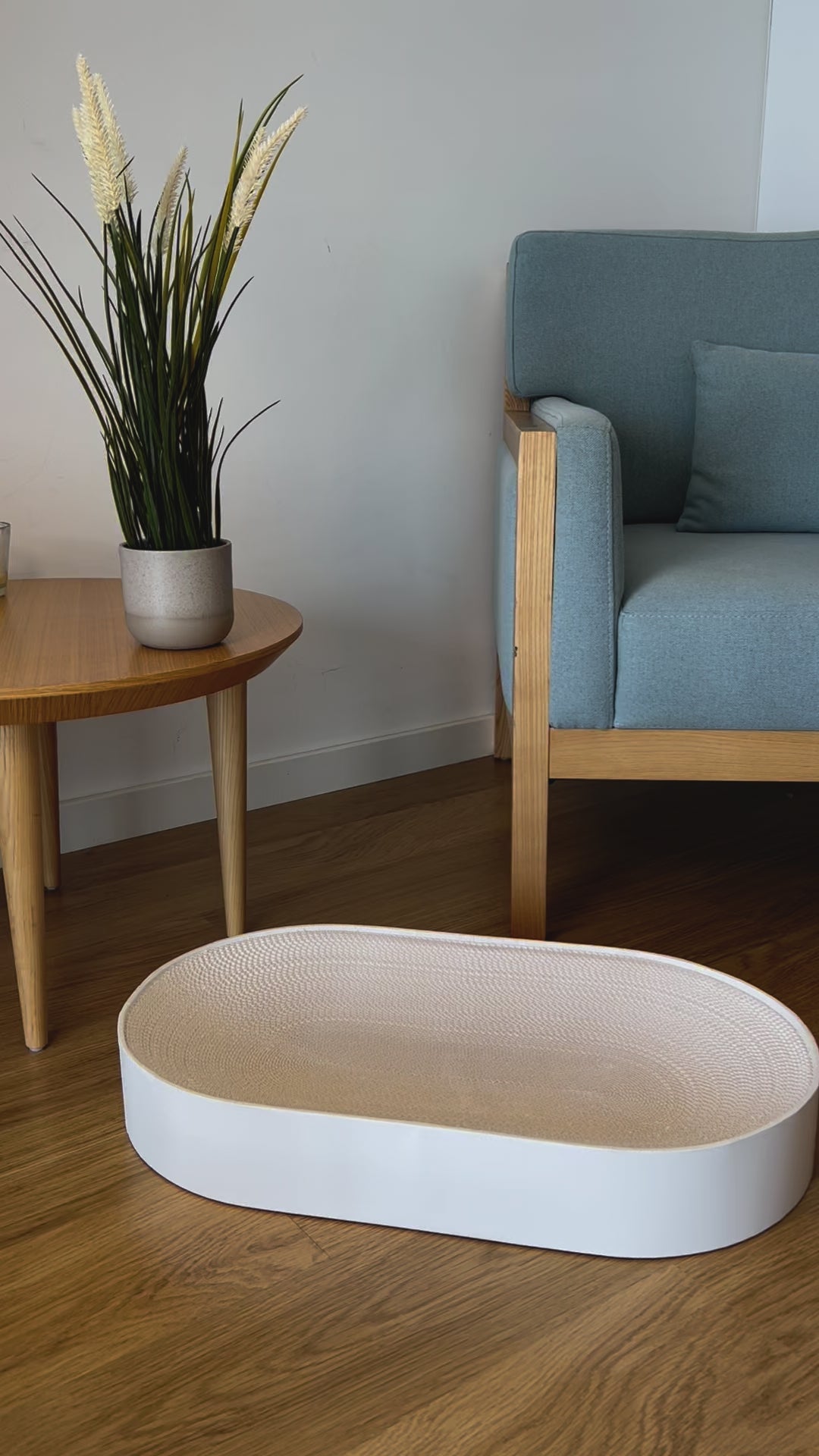 Elevate your home and satisfy your cat’s natural instincts with this White Oval Cardboard Cat Scratcher. Crafted from high-density corrugated cardboard, this elegant scratch board offers a tree-like texture cats love while blending into any minimalist interior. Its durable, non-toxic materials are safe for cats and 100% recyclable — perfect for eco-conscious pet owners.